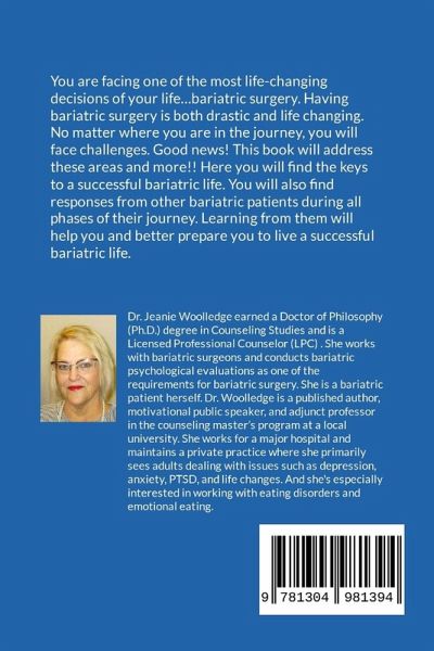 You are facing one of the most life-changing decisions of your life...bariatric surgery. Having bariatric surgery is both drastic and life changing. No matter where you are in the journey, you will face challenges. Good news! This book will address these areas and more!! Here you will find the keys to a successful bariatric life. You will also find responses from other bariatric patients during all phases of their journey. Learning from them will help you and better prepare you to live a successful bariatric life.