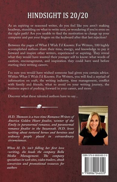 As an aspiring or seasoned writer, do you feel like you aren't making headway, stumbling on what to write next, or wondering if you're even on the right path? Are you unable to find the motivation to charge up your computer and put your fingers on the keyboard after that last rejection? Between the pages of What I Wish I'd Known: For Writers, 100 highly accomplished authors share their time, energy, and knowledge to pay it forward and inspire other writers, experienced or aspiring. They reveal what they would have wanted their younger selves to know: what words of caution, encouragement, and inspiration they could have used before starting their writing careers. I'm sure you would have wished someone had given you certain advice. Within What I Wish I'd Known: For Writers, you will find a myriad of information on craft, the writing industry, time management, conflict with family and friends, what to avoid on your writing journey, the business aspect of pushing forward in your career, and more. Discover what these talented authors have to say: S.M. Anderson, Jennifer Ashley, Steven Barnes, Jeremy Bates, Louise Bay, D.V. Berkom, Hunter Blain, Marci Bolden, Rhys Bowen, Sarah Elizabeth Bromke, Benedict Brown, Rachelle Burk, V.M. Burns, Lynn Cahoon, Ginjer L Clarke, Nancy Coco, Michael Cordell, Charly Cox, B. J. Daniels, Vincent B. Davis II, Ernest Dempsey, Delaney Diamond, Helena Dixon, Angus Donald, Lorna Dounaeva, Kerrie Droban, Jacqueline Druga, Donna Everhart, Chris Fabry, Erin Flanagan, Matt Forbeck, Stacy Green, Ross Greenwood, Lisa Harris, Paul Heatley, Rita Herron, Kate Hewitt, Kelly Hodge, Dwight Holing, Griff Hosker, Daniel Hurst, Pamela Fagan Hutchins, Rick Jones, Diane Kelly, Meera Kothand, Justin Leslie, Julie Anne Lindsey/Bree Baker, Kristen Luciani, S. E. Lynes, JB Lynn, Michelle Major, Phillip Margolin, T. B. Markinson, Angela Marsons, Tina Martin, M.D. Massey, Cheyenne McCray, Cathy McDavid, Rhonda McKnight, Bruno Miller, J.J. Miller, Christopher Mitchell, Kiersten Modglin, D.J. Molles, Mary Monroe, Lynn Morrison, Lisa Morton, Barbara Nickless, Nazri Noor, Peter O'Mahoney, Dan Padovan, Phaedra Patrick, Elizabeth Penney, Carly Phillips, Lisa Regan, David Ricciardi, Arianne Richmonde, Matthew Rief, Miranda Rijks, Dahlia Rose, Jenifer Ruff, Sofie Ryan, Sharon Sala, Pat Simmons, Joanna Campbell Slan, Miranda Smith, Jeff Strand, Jacquelin Thomas, Bill Thompson, Eric Thomson, H.D. Thomson, Michael J. Tougias, G.G. Vandagriff, Tim Waggoner, Dan Walsh, Rochelle B. Weinstein, Sherri Winston, D.L. Wood, Melinda Woodhall, and Pamela Samuels Young.