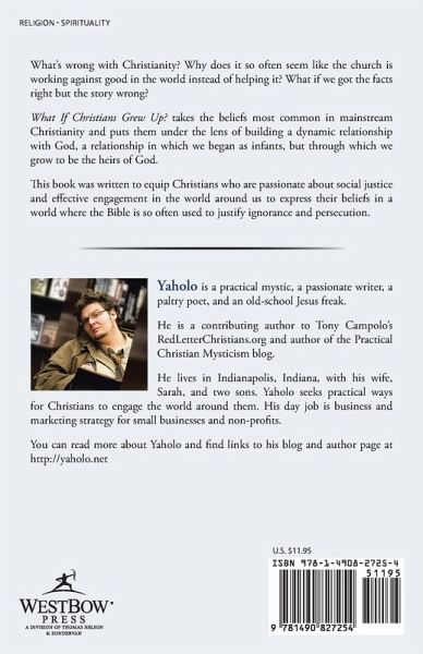 What's wrong with Christianity? Why does it so often seem like the church is working against good in the world instead of helping it? What if we got the facts right but the story wrong? What If Christians Grew Up? takes the beliefs most common in mainstream Christianity and puts them under the lens of building a dynamic relationship with God, a relationship in which we began as infants, but through which we grow to be the heirs of God. This book was written to equip Christians who are passionate about social justice and effective engagement in the world around us to express their beliefs in a world where the Bible is so often used to justify ignorance and persecution.