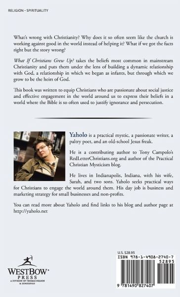 What's wrong with Christianity? Why does it so often seem like the church is working against good in the world instead of helping it? What if we got the facts right but the story wrong? What If Christians Grew Up? takes the beliefs most common in mainstream Christianity and puts them under the lens of building a dynamic relationship with God, a relationship in which we began as infants, but through which we grow to be the heirs of God. This book was written to equip Christians who are passionate about social justice and effective engagement in the world around us to express their beliefs in a world where the Bible is so often used to justify ignorance and persecution.