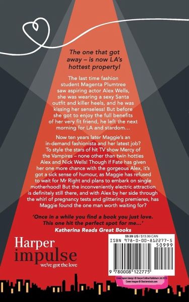 The one that got away - is now LA's hottest property! The last time fashion student Magenta Plumtree saw aspiring actor Alex Wells, she was wearing a sexy Santa outfit and killer heels, and he was kissing her senseless! But before she got to enjoy the full benefits of her very fit friend, he left the next morning for LA and stardom... Now ten years later Maggie's an in-demand fashionista and her latest job? To style the stars of hit TV show Mercy of the Vampires - none other than twin hotties Alex and Nick Wells! Though if Fate has given her one more chance with the gorgeous Alex, it's got a sick sense of humour, as Maggie has refused to wait for Mr Right and plans to embark on single motherhood! But the inconveniently electric attraction is definitely still there, and with Alex by her side through the whirl of pregnancy tests and glittering premieres, has Maggie found the one man worth waiting for?