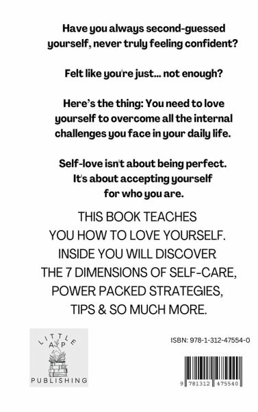 Here's a 7-D self-care plan to embrace who you are, cultivate more confidence, and live the life you truly deserve... Have you always second-guessed yourself, never truly feeling confident? Felt like you're just... not enough? Here's the thing: You need to love yourself to overcome all the internal challenges you face in your daily life. And get this... self-love isn't about being perfect. It's about accepting yourself for who you are, flaws and all. Women who possess high levels of self-love do not require external validation to feel good about themselves. They possess a sense of security in their own identity and are fully aware of their unique contributions to the world. Are you interested in becoming such a woman? Then, you've come to the right place. Inside this book that teaches you how to love yourself, you will discover: The 7 dimensions of self-care - prioritize yourself guilt-free with power-packed strategies and tips An effective assessment to help you identify your strengths and weakness - discover how self-efficacy and self-esteem translate into self-confidence Uncover the effects of your childhood thoughts and ideas on your adult life Why women struggle with body positivity and how social approval is used to control your ideas around #bopo 10+ ways to practice self-love and enjoy the mental and physical benefits that come with it Pin-pointed questionnaire to detect your level of self-consciousness VITALS of happiness for a fulfilled life full of passion and purpose The 5-step process of embracing vulnerability and improving relationships How erasing one word can change the entire course of your life (and other damages that words you speak to yourself are capable of) Chapter-end exercises to enhance each dimension of self-care And much more! Say goodbye to self-doubt, negative self-talk, and feeling like you're not enough, and cultivate a positive relationship with yourself, boost your confidence, and learn to truly love who you are. You can overcome your struggles with self-love and start living the life you deserve. It's not always easy, but with this book, you can begin your own journey toward self-love today. It's time to prioritize your own happiness and embrace self-love like never before: Scroll up and click "Add to Cart" right now.