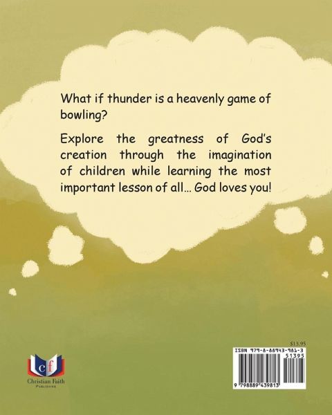 What if thunder is a heavenly game of bowling? Explore the greatness of God's creation through the imagination of children while learning the most important lesson of all...God loves you!