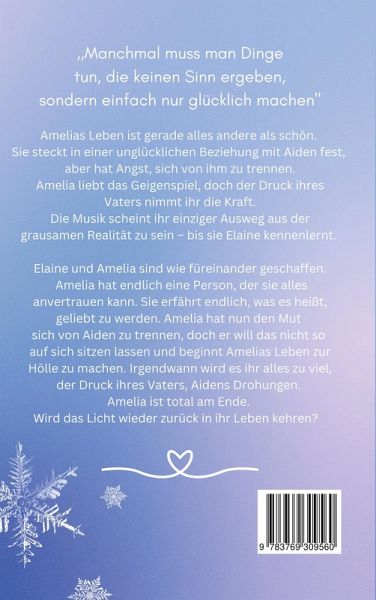 Amelias Leben ist gerade alles andere als schön. Sie steckt in einer unglücklichen Beziehung mit Aiden fest, aber hat Angst sich von ihm zu trennen. Amelia liebt das Geigenspiel, doch der Druck ihres Vaters nimmt ihr die Kraft. Die Musik scheint ihr einziger Ausweg aus der grausamen Realität zu sein. Bis sie Elaine kennenlernt. Elaine und Amelia sind wie füreinander geschaffen. Amelia hat endlich eine Person, der sie alles anvertrauen kann. Sie erfährt endlich, was es heißt, geliebt zu werden. Amelia hat nun den Mut sich von Aiden zu trennen, doch er will das nicht so auf sich sitzen lassen und beginnt Amelias Leben zur Hölle zu machen. Irgendwann wird es ihr alles zu viel, der Druck ihres Vaters, Aidens Drohungen. Amelia ist total am Ende. Wird das Licht wieder zurück in ihr Leben kehren?
