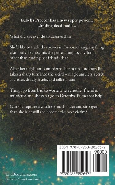 Isabella Proctor has a new super power – finding dead bodies. She'd like to trade this power in for something, anything else – talk to ants, mix the perfect mojito, anything other than finding her friends dead. After her neighbor is murdered, her not-so-ordinary life takes a sharp turn into the weird – magic amulets, secret societies, deadly feuds, and talking cats. Things go from bad to worse when another friend is murdered and she can't go to Detective Palmer for help. Can she capture a witch so much older and stronger than she is or will she become the next victim? What in Carnation is the second book in the Isabella Proctor cozy mystery series.