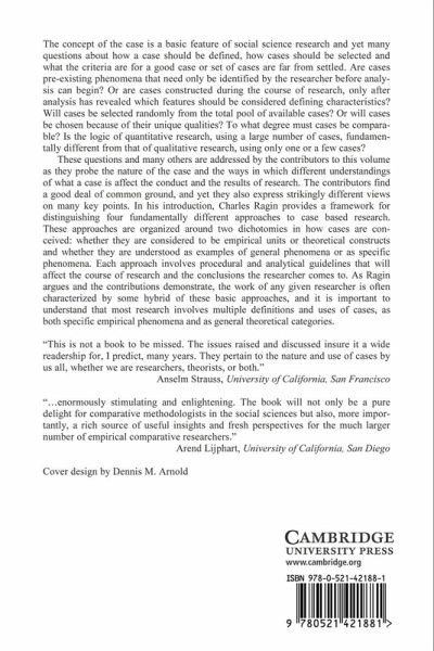 The concept of the case is a basic feature of social science research and yet many questions about how a case should be defined, how cases should be selected and what the criteria are for a good case or set of cases are far from settled.