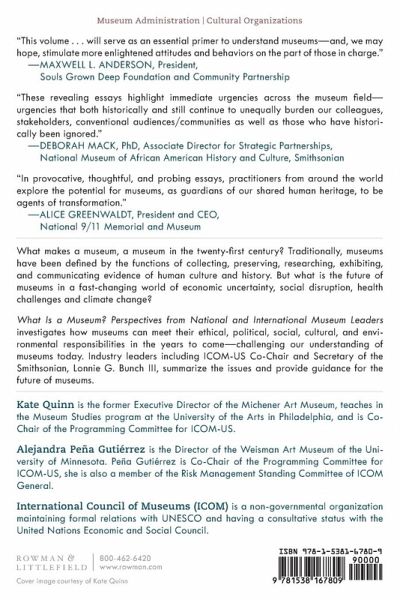 A series of over 40 essays written by well-known leaders in the museum sector and related fields contribute to our understanding of the word "museum" in the United States and internationally. Members of the International Council of Museums provide overviews of topics