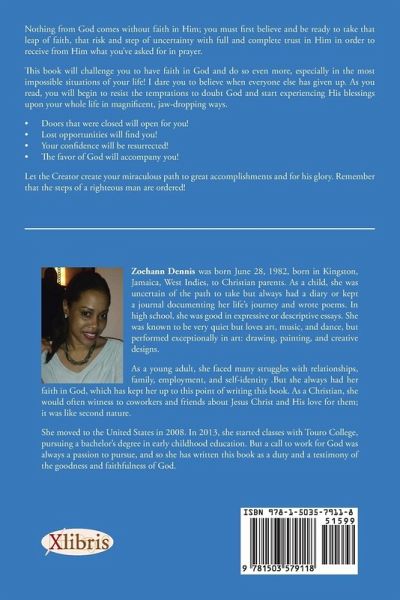 Zoehann Dennis was born June 28, 1982, born in Kingston, Jamaica, West Indies, to Christian parents. As a child, she was uncertain of the path to take but always had a diary or kept a journal documenting her life's journey and wrote poems. In high school, she was good in expressive or descriptive essays. She was known to be very quiet but loves art, music, and dance, but performed exceptionally in art: drawing, painting, and creative designs. As a young adult, she faced many struggles with relationships, family, employment, and self-identity .But she always had her faith in God, which has kept her up to this point of writing this book. As a Christian, she would often witness to coworkers and friends about Jesus Christ and His love for them; it was like second nature. She moved to the United States in 2008. In 2013, she started classes with Touro College, pursuing a bachelor's degree in early childhood education. But a call to work for God was always a passion to pursue, and so she has written this book as a duty and a testimony of the goodness and faithfulness of God.