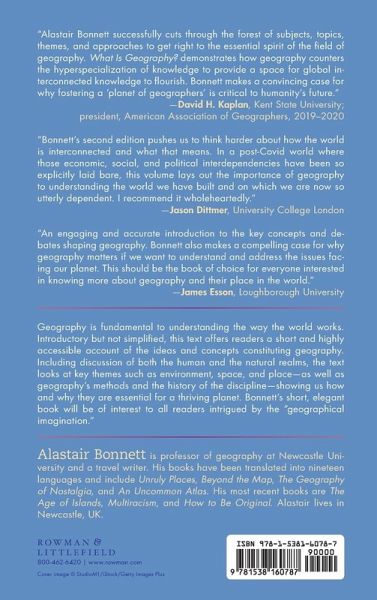 Preface Chapter 1. Introduction Why What is Geography? Chapter 2: Order and Power: To Know the World I Introduction Ordering the World Modern Geography: The World of Trade and Nations Whose Geography? Conclusion Chapter 3: People and Nature: To Know the World II Introduction Our Environment Changes, Challenges, and Defenses The Systems of Nature Conclusion Chapter 4: Urbanization and Mobility Introduction Presenting the City Urban Critics Mobilities Conclusion Chapter 5: Doing Geography Introduction To Explore To Connect To Map To Engage Geography, Children and Freedom: A Plea Chapter 6: Institutionalizing Geography Introduction Specialist Institutions Geography's Popular Institutions Conclusion Chapter 7: Future Geographies Introduction Surviving and Thriving Diverse Geographies Digital and Virtual Geographies Astrogeography: Other Worlds, New Comparisons, and New Conflicts Conclusions: A Planet of Geographers Postscript: What is Geography? Notes Bibliography About the Author Index