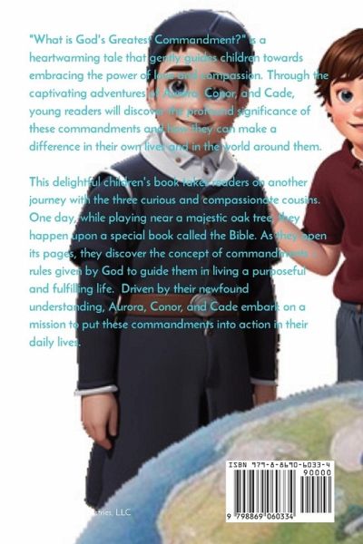 "What is God's Greatest Commandment?" is a captivating children's book that invites young readers on an enchanting adventure with three cousins: Aurora, Conor, and Cade. In their beautiful village, these playful children stumble upon a remarkable discovery - a special book called the Bible. As they delve into its pages, they uncover the concept of commandments - guidelines bestowed upon us by God to live a righteous and fair life. With over six hundred verses in Bible full of commandments to explore, the children learn that two commandments hold the utmost significance. The first commandment is to love God with all their heart, soul, and mind. This encompasses loving God with their thoughts, feelings, and entire being. They realize that loving God means communicating with Him, expressing gratitude for the wonders of the world, and showing kindness to others. The second vital commandment is to love their neighbors as themselves. This means treating others with kindness and love, just as they would wish to be treated. The children grasp the importance of being good neighbors - helping others, sharing, and fostering friendships. Inspired by a story they read in the Bible about Jesus, who emphasized the significance of these commandments, Aurora, Conor, and Cade embark on a mission to live by these principles each day. They start by saying daily prayers, expressing gratitude for God's love and seeking guidance. Additionally, they demonstrate kindness to their neighbors, lending a helping hand, sharing their toys, and becoming true friends. As the children follow these commandments, something magical happens. Their village becomes a happier and more loving place. The kindness and love exhibited by Aurora, Conor, and Cade inspire others to embrace these commandments as well. Through their journey, the children learn that by loving God and loving others, they have the power to make a positive difference in the world. They come to understand that these commandments are not mere rules, but a pathway to a meaningful and fulfilling life. From that day forward, Aurora, Conor, and Cade continue to love God with all their heart, soul, and mind, while treating others with kindness and love. They become shining examples of how following the commandments can bring joy and harmony to their village. In this heartwarming tale, readers of "What is God's Greatest Commandment?" are reminded of the transformative power of love and the significance of living by the two greatest commandments from the Bible. The story serves as an inspiring reminder for children of all ages to embrace love, kindness, and compassion in their own lives, spreading these virtues wherever they go.