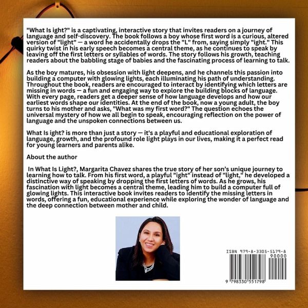 "What is 'Ight'?" Elias is a curious little boy with a fascination for all things bright! From the sun to the stars, and even a simple lamp, his first words are filled with wonder-but his mom thinks he's just babbling. Elias' love for light shines through in every moment of his young life, from the glowing sun to the moon, rainbows, and twinkling stars. As Elias grows, he begins to teach his mom a beautiful lesson about paying attention to what truly matters most, showing her how light is not just something we see, but something that fills our lives with wonder and joy. This heartwarming story celebrates the unique perspective of a child and the magical bond between a mother and her son. It reminds us all to see the world through the eyes of curiosity and imagination. Filled with warmth, discovery, and love, this book is perfect for young readers and their families. At the end, you'll find fun questions and answers that not only help to spark deeper conversations but also encourage young minds to reflect on their own understanding. These questions are designed to check for reading comprehension and to encourage children to explore their curiosities-just like Elias does with his fascination for light, from rainbows to stars. This book is a perfect way to inspire kids to appreciate the light all around them and see the world with fresh eyes.