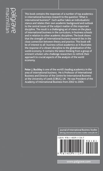 What is international Business? Is the international business research agenda running out of steam? These and other key questions are answered in this influential book which points to a definitive statement on International Business. Bringing together a variety of different perspectives, this book is a collection of the latest thinking from eminent scholars on the question of international business.