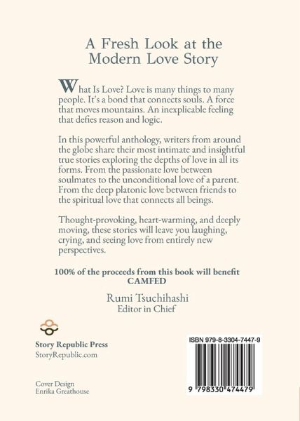 "These everyday stories remind us to pay attention to our lives and not simply let precious days slip by unnoticed."-bestselling author Bernadette Jiwa, from the Afterword True stories about finding love in unexpected places will keep you going on the darkest night. Story Republic, a global collaborative community using stories for good, proudly presents What is Love? their first collection of lived stories that deepen the human bond. All proceeds benefit CAMFED, a non-profit organization that supports girl's education and strengthens their voices. *** Love is many things to many people. It's a bond that connects souls. A force that moves mountains. An inexplicable feeling that defies reason and logic. And it shows up everywhere- from the edges of a war-ravaged country, the eastern seashore, aboard a cruise ship, in a car or kitchen. Even inside a public restroom at the hospital. In this powerful anthology, writers from around the globe share their most intimate and insightful true stories exploring the depths of love in all its forms; from the passionate love between soulmates to the unconditional love of a parent. From the deep platonic love between friends to the spiritual love that connects all beings. Thought-provoking, heart-warming, and deeply moving, the bite-sized stories in this book will leave you laughing, crying, and seeing love from entirely new perspectives. If you enjoy the honest personal storytelling of Anne Lamott, David Sedaris, Hanna Gadsby, Lin-Manuel Miranda, and Michelle Obama, or anthologies by The Moth, you will adore What is Love?