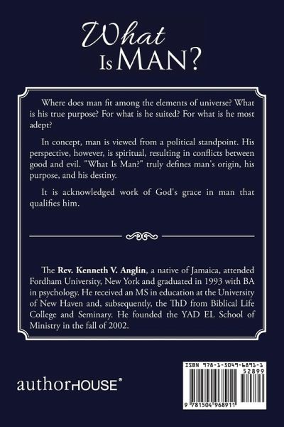 Where does man fit among the elements of universe? What is his true purpose? For what is he suited? For what is he most adept? In concept, man is viewed from a political standpoint. His perspective, however, is spiritual, resulting in conflicts between good and evil. "What Is Man?" truly defines man's origin, his purpose, and his destiny. It is acknowledged work of God's grace in man that qualifies him.