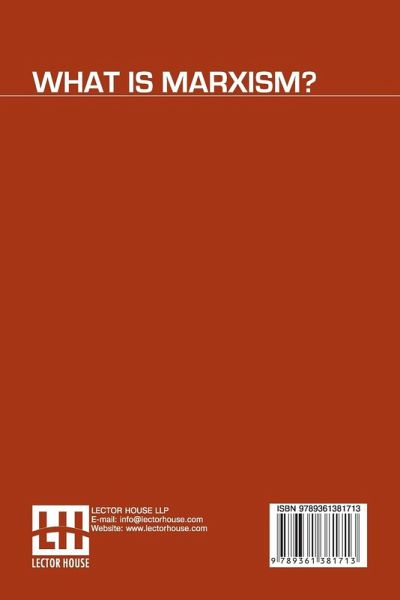 NEW PRINT WITH PROFESSIONAL TYPE-SET IN CONTRAST TO SCANNED PRINTS OFFERED BY OTHERS What Is Marxism? This book is a result of an effort made by us towards making a contribution to the preservation and repair of original classic literature. In an attempt to preserve, improve and recreate the original content, we have worked towards: 1. Type-setting & Reformatting: The complete work has been re-designed via professional layout, formatting and type-setting tools to re-create the same edition with rich typography, graphics, high quality images, and table elements, giving our readers the feel of holding a fresh and newly reprinted and/or revised edition, as opposed to other scanned & printed (Optical Character Recognition - OCR) reproductions. 2. Correction of imperfections: As the work was re-created from the scratch, therefore, it was vetted to rectify certain conventional norms with regard to typographical mistakes, hyphenations, punctuations, blurred images, missing content/pages, and/or other related subject matters, upon our consideration. Every attempt was made to rectify the imperfections related to omitted constructs in the original edition via other references. However, a few of such imperfections which could not be rectified due to intentional\unintentional omission of content in the original edition, were inherited and preserved from the original work to maintain the authenticity and construct, relevant to the work.
