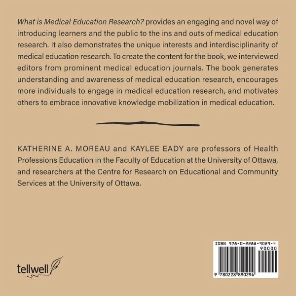 What is Medical Education Research? provides an engaging and novel way of introducing learners and the public to the ins and outs of medical education research. It also demonstrates the unique interests and interdisciplinarity of medical education research. To create the content for the book, we interviewed editors from prominent medical education journals. The book generates understanding and awareness of medical education research, encourages more individuals to engage in medical education research, and motivates others to embrace innovative knowledge mobilization in medical education.