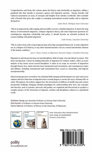 "Comprehensive and lively, this volume spans the history and scholarship on migtration, telling a gendered tale that attends to structure, agency and migration sysstems. Harzig, Hoerder and Gabaccia systematize an array of concepts and insights from scholars worldwide, then conclude with a flourish that gives due to emerging transcultural societal studies and to migrants themselves."