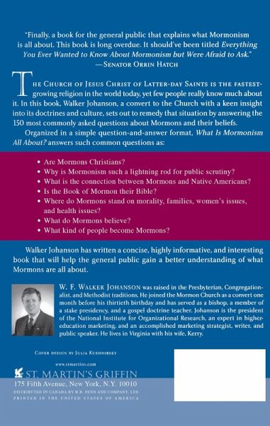 Organized in a simple and easy-to-read format, this book aims to answer dozens of common questions concerning the people, practices, history, and culture of the Mormon faith. Are Mormons Christians? What is the Book of Mormon? How does Mormonism contrast with the world's other religions? What exactly do today's Mormons believe? The book offers readers of all backgrounds an accessible and informative Q&A session that covers all facets of The Church of Jesus Christ of Latter-Day Saints. Although sometimes misunderstood, Mormonism is the fastest growing religion in the world. Johanson's clear and concise volume shows us the ideas, beliefs, and rites behind this faith.