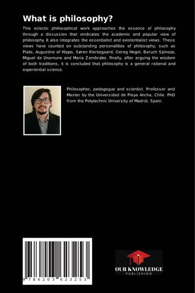 This eclectic philosophical work approaches the essence of philosophy through a discussion that vindicates the academic and popular view of philosophy. It also integrates the essentialist and existentialist views. These views have counted on outstanding personalities of philosophy, such as Plato, Augustine of Hippo, Søren Kierkegaard, Gerog Hegel, Baruch Spinoza, Miguel de Unamuno and Maria Zambrabo. Finally, after arguing the wisdom of both traditions, it is concluded that philosophy is a general rational and experiential science.