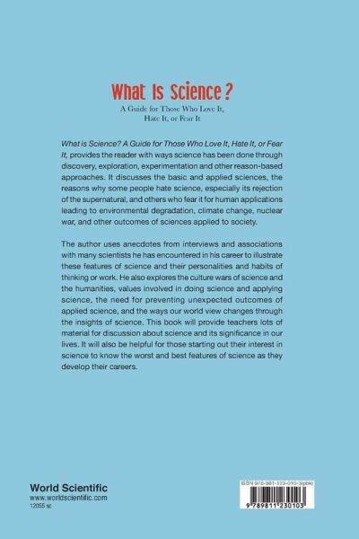 What is Science? A Guide for Those Who Love It, Hate It, or Fear It, provides the reader with ways science has been done through discovery, exploration, experimentation and other reason-based approaches. It discusses the basic and applied sciences, the reasons why some people hate science, especially its rejection of the supernatural, and others who fear it for human applications leading to environmental degradation, climate change, nuclear war, and other outcomes of sciences applied to society. The author uses anecdotes from interviews and associations with many scientists he has encountered in his career to illustrate these features of science and their personalities and habits of thinking or work. He also explores the culture wars of science and the humanities, values involved in doing science and applying science, the need for preventing unexpected outcomes of applied science, and the ways our world view changes through the insights of science. This book will provide teachers lots of material for discussion about science and its significance in our lives. It will also be helpful for those starting out their interest in science to know the worst and best features of science as they develop their careers.