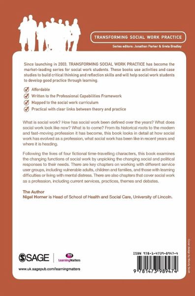 Following the lives of four fictional time-travelling characters, it examines the changing functions of social work by unpicking the changing social and political responses to their needs. From its historical roots to the modern and fast-moving profession it has become, this book looks in detail at how social work has evolved as a profession, what social work looks like in recent years and where it is heading. There are key chapters on working with different service user groups including vulnerable adults, children and families and those with learning difficulties or having to live with mental distress. There are also chapters that cover social work as a profession, including current services, practices, themes and debates.