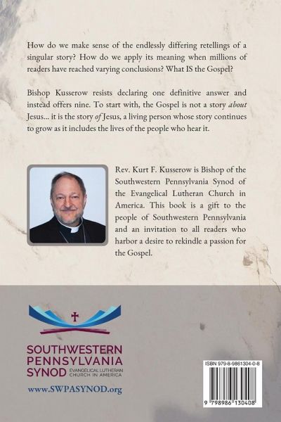 How do we make sense of the endlessly differing retellings of a singular story? How do we apply its meaning when millions of readers have reached varying conclusions? What IS the Gospel? Bishop Kusserow resists declaring one definitive answer and instead offers nine. To start with, the Gospel is not a story about Jesus... it is the story of Jesus, a living person whose story continues to grow as it includes the lives of the people who hear it. ¿¿¿¿¿¿¿_____________________________ Free Download: "Leader's Guide for Small Group Book Study" (https://www.swpasynod.org/s/What-is-the-Gospel-Leader-Guide.pdf)
