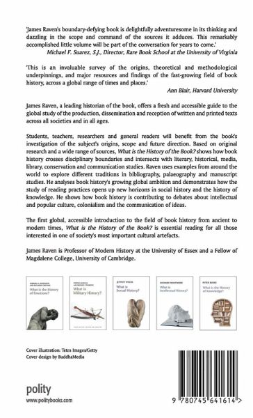 Students, teachers, researchers and general readers will benefit from the book's investigation of the subject's origins, scope and future direction. Based on original research and a wide range of sources, What is the History of the Book? shows how book history crosses disciplinary boundaries and intersects with literary, historical, media, library, conservation and communications studies. Raven uses examples from around the world to explore different traditions in bibliography, palaeography and manuscript studies. He analyses book history's growing global ambition and demonstrates how the study of reading practices opens up new horizons in social history and the history of knowledge. He shows how book history is contributing to debates about intellectual and popular culture, colonialism and the communication of ideas.