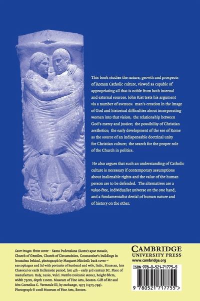 This book studies the nature, growth and prospects of Roman Catholic culture, viewed as capable of appropriating all that is noble both from internal and external sources. John Rist tests his argument via a number of avenues: man's creation in the image of God and historical difficulties about incorporating women into that vision; the relationship between God's mercy and justice; the possibility of Christian aesthetics; the early development of the see of Rome as the source of an indispensable doctrinal unity for Christian culture; the search for the proper role of the Church in politics. He also argues that such an understanding of Catholic culture is necessary if contemporary assumptions about inalienable rights and the value of the human person are to be defended. The alternatives are a value-free, individualist universe on the one hand, and a fundamentalist denial of human nature and of history on the other.
