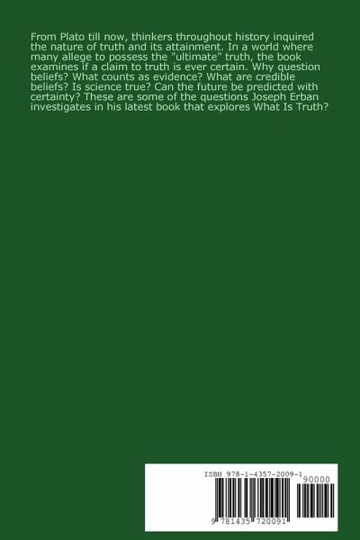 From Plato until now, thinkers throughout history inquired the nature of truth and its attainment. In a world where many allege to possess the "ultimate" truth, the book examines if a claim to truth is ever certain. Why question beliefs? What counts as evidence? What are credible beliefs? Is science true? Can the future be predicted with certainty? These are some of the questions Joseph Erban investigates in his latest book that explores What is Truth?