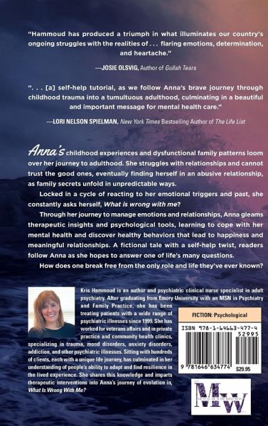 Anna's childhood experiences and dysfunctional family patterns loom over her journey to adulthood. She struggles with relationships and cannot trust the good ones, eventually finding herself in an abusive relationship, as family secrets unfold in unpredictable ways. Locked in a cycle of reacting to her emotional triggers and past, she constantly asks herself, What is wrong with me? Through her journey to manage emotions and relationships, Anna gleams therapeutic insights and psychological tools, learning to cope with her mental health and discover healthy behaviors that lead to happiness and meaningful relationships. A fictional tale with a self-help twist, readers follow Anna as she hopes to answer one of life's many questions. How does one break free from the only role and life they've ever known?