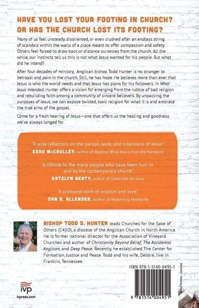 Have you lost your footing in church? Or has the church lost its footing? Many of us feel unsteady, disoriented, even crushed after an endless string of scandals within the walls of a place meant to offer compassion and safety. Others feel forced to draw back or distance ourselves from the church. All the while, our instincts tell us this is not what Jesus wanted for his people. But what did he intend? After four decades of ministry, Anglican bishop Todd Hunter is no stranger to betrayal and pain in the church. Still, he has hope. He believes more than ever that Jesus is who the world needs and that Jesus has plans for his followers. In What Jesus Intended, Hunter offers a vision for emerging from the rubble of bad religion and rebuilding faith among a community of sincere believers. By unpacking the purposes of Jesus, we can expose twisted, toxic religion for what it is and embrace the true aims of the gospel. Come for a fresh hearing of Jesus--one that offers us the healing and goodness we've always longed for.