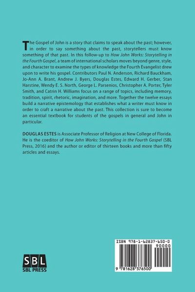 In this follow-up to How John Works: Storytelling in the Fourth Gospel, a team of international scholars examines the types of knowledge the Fourth Evangelist drew upon to write his gospel. Contributors focus on a range of topics, including memory, tradition, spirit, rhetoric, imagination, and more. Together the twelve essays build a narrative epistemology that establishes what a writer must know in order to craft a narrative about the past. This collection is sure to become an essential textbook for students of the gospels in general and John in particular.