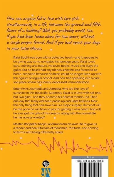 Description Rajat Sodhi was born with a defective heart-and it appears to be giving way as he navigates his teenage years. Rajat loves cars, cooking and nature. He loves books, music and plays the guitar. But he hasn't had any friends since he was forced to be home-schooled because his heart could no longer keep up with the rigours of regular school. And now he's spiralling into a dark, sad place where he's lonely, depressed, misunderstood. Enter twins Jasmeeta and Jameela, who are like rays of sunshine in this bleak life. Suddenly, Rajat is in love with not one, but two girls-and they become his dearest friends, too. Then one day that leaky old heart packs up and Rajat flatlines. Now the only thing that can save him is a major surgery. But what will be the price he will have to pay for getting a new heart? And will he ever get the girls of his dreams, along with the normal life he has always wanted? Master storyteller Ranjit Lal draws from his own life to give us a tender and beautiful tale of friendship, fortitude, and coming to terms with being differently abled.
