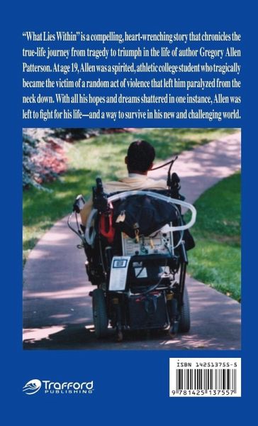 What Lies Within is the compelling true-life journey of drive-by shooting victim, Gregory "Allen" Patterson, and his struggles to find meaning in life after all hope is seemingly lost.