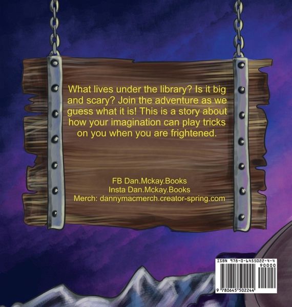What lives under the library, is it big and hairy? It has sharp teeth and yellow eyes I think it might be very scary! Join the adventure as we go underneath the library to find out what is causing all the fuss. This story is about how your imagination can play tricks on you when you're scared.