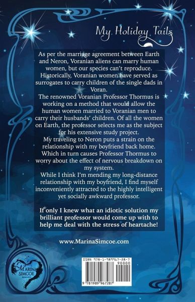 As per the marriage agreement between Earth and Neron, Voranian aliens can marry human women, but our species can't reproduce. Historically, Voranian women have served as surrogates to carry children of the single dads in Voran. The renowned Voranian Professor Thormus is working on a method that would allow the human women married to Voranian men to carry their husbands' children. Of all the women on Earth, the professor selects me as the subject for his extensive study project. My traveling to Neron puts a strain on the relationship with my boyfriend back home. Which in turn causes Professor Thormus to worry about the effect of nervous breakdown on my system. While I think I'm mending my long-distance relationship with my boyfriend, I find myself inconveniently attracted to the highly intelligent yet socially awkward professor. If only I knew what an idiotic solution my brilliant professor would come up with to help me deal with the stress of heartache! ________________________ All books in My Holiday Tails series stand alone, loosely connected by the same world and the fact that all heroes have tails. This series can be read in any order. ________________________ This book was written entirely by the author. No Artificial Intelligence or ghostwriters were used. Contains graphic scenes of intimacy. Intended for mature readers.