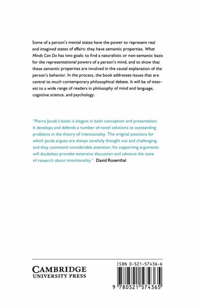 Some of a person's mental states have the power to represent real and imagined states of affairs: they have semantic properties. What Minds Can Do has two goals: to find a naturalistic or non-semantic basis for the representational powers of a person's mind, and to show that these semantic properties are involved in the causal explanation of the person's behavior. In the process, the book addresses issues that are central to much contemporary philosophical debate. It will be of interest to a wide range of readers in philosophy of mind and language, cognitive science, and psychology.