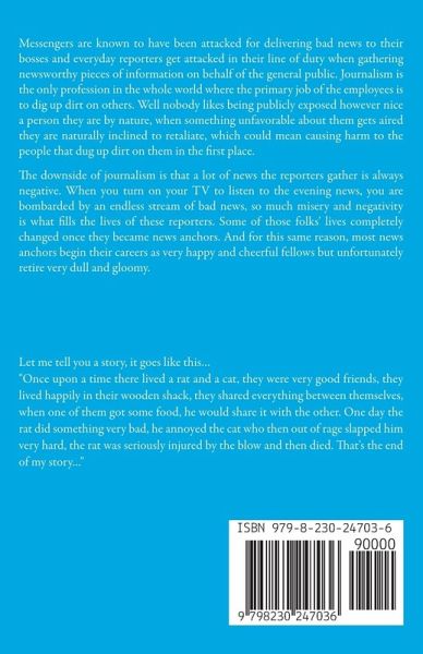 Messengers are known to have been attacked for delivering bad news to their bosses and everyday reporters get attacked in their line of duty when gathering newsworthy pieces of information on behalf of the general public. Journalism is the only profession in the whole world where the primary job of the employees is to dig up dirt on others. Well nobody likes being publicly exposed however nice a person they are by nature, when something unfavorable about them gets aired they are naturally inclined to retaliate, which could mean causing harm to the people that dug up dirt on them in the first place. The downside of journalism is that a lot of news the reporters gather is always negative. When you turn on your TV to listen to the evening news, you are bombarded by an endless stream of bad news, so much misery and negativity is what fills the lives of these reporters. Some of those folks' lives completely changed once they became news anchors. And for this same reason, most news anchors begin their careers as very happy and cheerful fellows but unfortunately retire very dull and gloomy. The negative and heart-wrenching stories they have been airing for decades really get onto them and start to affect their way of thinking. It affects the way they see the people around them and the world in general. The first people to notice these changes are the family members of those journalists. They come to realize that something inside their loved ones started to change from the moment they became journalists, be it either field correspondents, news anchors, or investigative journalists. We are surrounded by a world filled with news of all kinds, the modern-day technologies bombard you with so much news in which you find it hard to distinguish facts from fiction. The word ''Fake News'' is not a Trump's invention. In fact many years before his coming into office, there was a growing mistrust by viewers towards the mainstream media, because some of the stories they aired turned out to be outright lies. His words only ignited the rage and dissatisfaction that had been boiling in the public's hearts for many years. He touched an inflamed nerve and that was enough to bring forth what we now call ''Fake News Global Phenomenon''. Lying even for once is enough to damage the reputation of your media house. Even if you delivered a thousand accurate news and told just a single lie, that is all viewers need to turn away from you. Now with the emergence of social media, the uncertainty is made even worse, anyone can post anything on social media and call it news. It's a more volatile and dangerous world out there right now, the world in which the current generation is growing up is totally different from what the millennials and those previous generations grew up in. it's a wild world out on the internet there, everyone, therefore, has to be careful with what they read or listen to. Because no one can really be trusted with news. Bolton is paranoid about the media, he tries to make sense of what it really is, how it functions, its purpose, aims and goals in society, and how it has influenced him over the past decades, although he is very scared of finding himself in the media spotlight someday, at the same time he discovers a hidden edge, an important value the world owes the media.
