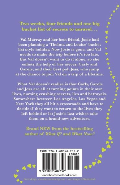 Two weeks, four friends and one big bucket list of secrets to unravel... Brand NEW from the bestselling author of What If? and What Now? - Pre-Order Now! Val Murray and her best friend, Josie had been planning a 'Thelma and Louise' bucket list style holiday. Now Josie is gone, and Val needs to make the trip before it's too late. But Val doesn't want to do it alone, so she enlists the help of her nieces, Carly and Carole, and their best pal, Jess, who jump at the chance to join Val on a trip of a lifetime. What Val doesn't realise is that Carly, Carole and Jess are all at turning points in their own lives, nursing crushing secrets, lies and betrayals. Somewhere between Los Angeles, Las Vegas and New York they all hit a crossroads and have to decide if they want to return to the lives they left behind or let Josie's last wishes take them on a brand new adventure. Praise for Shari Low: 'I'd forgotten how enjoyable it is to read a Shari Low book but My One Month Marriage reminded me of the fun to be had in her words...funny, warm and insightful.' Dorothy Koomson 'Great fun from start to finish.' Jenny Colgan 'There are only two words for Shari Low: utterly hilarious. I laughed like a drain.' Carmen Reid 'One of the funniest books I've ever read!' Marisa Mackle 'More fun than a girl's night out!' OK! magazine 'A brilliant, light comical read with some fabulous twists and turns' Bookbag 'A thrilling page turner that grabs your attention from the off. Highly recommended' The Sun 'Totally captivating and it felt like I'd lost a new best friend when it came to the end' Closer Magazine 'Touching stuff' Heat.