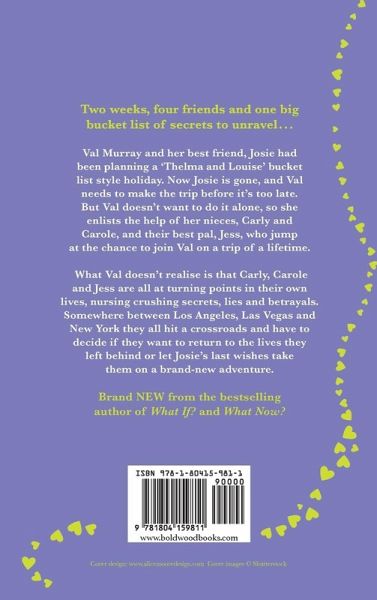 Two weeks, four friends and one big bucket list of secrets to unravel... Brand NEW from the bestselling author of What If? and What Now? - Pre-Order Now! Val Murray and her best friend, Josie had been planning a 'Thelma and Louise' bucket list style holiday. Now Josie is gone, and Val needs to make the trip before it's too late. But Val doesn't want to do it alone, so she enlists the help of her nieces, Carly and Carole, and their best pal, Jess, who jump at the chance to join Val on a trip of a lifetime. What Val doesn't realise is that Carly, Carole and Jess are all at turning points in their own lives, nursing crushing secrets, lies and betrayals. Somewhere between Los Angeles, Las Vegas and New York they all hit a crossroads and have to decide if they want to return to the lives they left behind or let Josie's last wishes take them on a brand new adventure. Praise for Shari Low: 'I'd forgotten how enjoyable it is to read a Shari Low book but My One Month Marriage reminded me of the fun to be had in her words...funny, warm and insightful.' Dorothy Koomson 'Great fun from start to finish.' Jenny Colgan 'There are only two words for Shari Low: utterly hilarious. I laughed like a drain.' Carmen Reid 'One of the funniest books I've ever read!' Marisa Mackle 'More fun than a girl's night out!' OK! magazine 'A brilliant, light comical read with some fabulous twists and turns' Bookbag 'A thrilling page turner that grabs your attention from the off. Highly recommended' The Sun 'Totally captivating and it felt like I'd lost a new best friend when it came to the end' Closer Magazine 'Touching stuff' Heat.