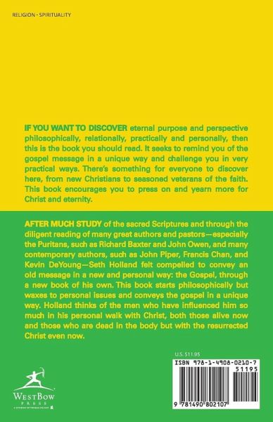 If you want to discover eternal purpose and perspective philosophically, relationally, practically and personally, then this is the book you should read. It seeks to remind you of the gospel message in a unique way and challenge you in very practical ways. There’s something for everyone to discover here, from new Christians to seasoned veterans of the faith. This book encourages you to press on and yearn more for Christ and eternity.
