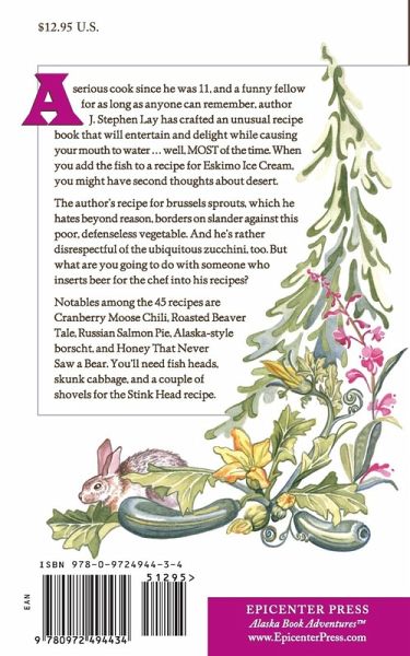A serious cook since he was 11, and a funny fellow for as long as anyone can remember, author J. Stephen Lay has crafted an unusual recipe book tht will entertain and delight while causing your mouth to water...well, MOST of the time. When you add the fish to a recipe for Eskimo Ice Cream, you might have second thoughts about desert. The author's recipe for brussel sprouts, which he hates beyond reason, borders on slander against this poor, defenseless vegetable. And he's rather disrespectful of the ubiquitous zucchini, too. But what are you going to do with someone who inserts beer for the chef into his recipe? Notables among the 45 recipes are Cranberry Moose Chili, Roasted Beaver Tale, Russian Salmon Pie, Alaska-style borscht, and Honey That Never Saw a Bear. You'll need fish heads, skunk cabbage, and a couple of shovels for the Stink Head recipe. Yuck!