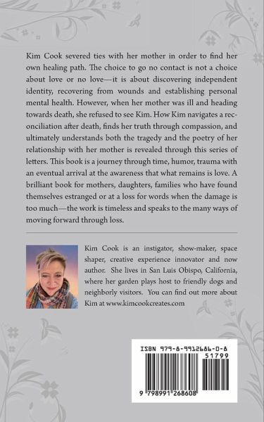 Kim Cook severed ties with her mother in order to find her own healing path. The choice to go no contact is not a choice about love or no love-it is about discovering independent identity, recovering from wounds and establishing personal mental health. However, when her mother was ill and heading towards death, she refused to see Kim. How Kim navigates a reconciliation after death, finds her truth through compassion, and ultimately understands both the tragedy and the poetry of her relationship with her mother unfolds in this series of letters. This book is a journey through time, humor, trauma with an eventual arrival at the awareness that what remains is love. A brilliant book for mothers, daughters, families who have found themselves estranged or at a loss for words when the damage is too much-the work speaks to the multiple ways of moving forward through loss. According to Karl Pillimer, Ph.D. and author of Fault Lines: Fractured Families and How to Mend Them, published in 2022, 27% of Americans, or the equivalent of 70 million people are currently estranged. CBS News Poll conducted in 2021 evidenced that 56% of Americans have been estranged at some point, and of those 39% never reconciled. As witnessed in the recent New Yorker article, August 30, 2024, by Anna Russell, Why so Many People Are Going No Contact with Their Parents, this is a growing phenomenon. Timely and meaningful, Kim Cook's book opens doors to ways of approaching reconciliation even without contact. She gently finds a way to be both empathic and candid; allowing readers to explore their own relationships without judgment. Valuable and helpful for those recovering from many kinds of hurt, What Remains is Love is uplifting and encouraging for readers of all kinds.