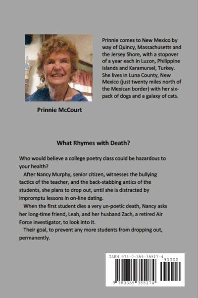 Who would believe a college poetry class could be hazardous to your health? After Nancy Murphy, senior citizen, witnesses the bullying tactics of the teacher, and the back-stabbing antics of the students, she plans to drop out, until she is distracted by impromptu lessons in on-line dating. When the first student dies a very un-poetic death, Nancy asks her long-time friend, Leah, and her husband Zach, a retired Air Force investigator, to look into it. Their goal, to prevent any more students from dropping out, permanently.