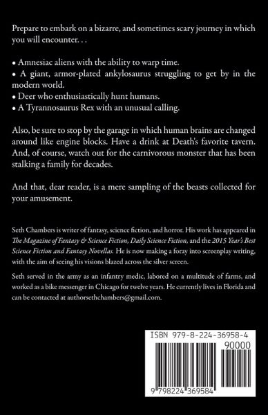 Prepare to embark on a bizarre, and sometimes scary journey in which you will encounter. . . ¿ Amnesiac aliens with the ability to warp time. ¿ A giant, armor-plated ankylosaurus struggling to get by in the modern world. ¿ Deer who enthusiastically hunt humans. ¿ A Tyrannosaurus Rex with an unusual calling. Also, be sure to stop by the garage in which human brains are changed around like engine blocks. Have a drink at Death's favorite tavern. And, of course, watch out for the carnivorous monster that has been stalking a family for decades. And that, dear reader, is a mere sampling of the beasts collected for your amusement.