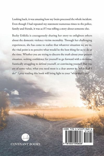 Looking back, it was amazing how my brain processed the whole incident. Even though I had repeated my statement numerous times to the police, family and friends, it was as if I was telling a story about someone else. Becky Erkkila is courageously sharing her story to enlighten others about the domestic violence victim mentality. Through her challenging experiences, she has come to realize that whatever situation we are in, the vital point is to perceive what would be the best thing for us to do at the time. Whether you are trying to discern the truth about your present situation, seeking confidence for yourself to go forward with a decision, frantically struggling to defend yourself, or convincing yourself that you are of some value, what you need most is a clear answer to "what shall I do?" I pray reading this book will bring light to your "what shall I do?"