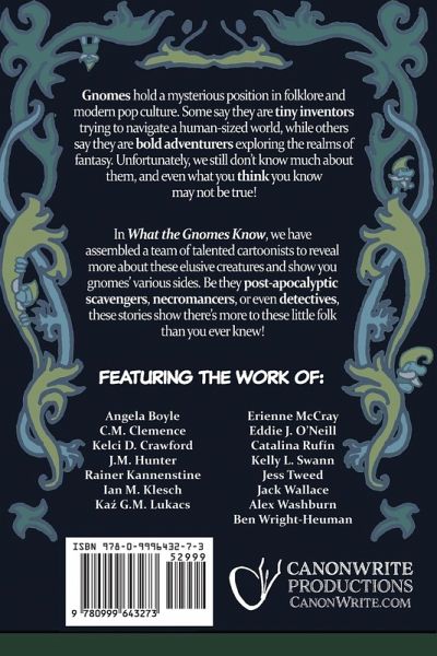 Gnomes hold a mysterious position in folklore and modern pop culture. Some say they are tiny inventors trying to navigate a human-sized world, while others say they are bold adventurers exploring the realms of fantasy. Unfortunately, we still don't know much about them, and even what you think you know may not be true! In What the Gnomes Know, we have assembled a team of talented cartoonists to reveal more about these elusive creatures and show you gnomes' various sides. Be they post-apocalyptic scavengers, necromancers, or even detectives, these stories show there's more to these little folk than you ever knew!