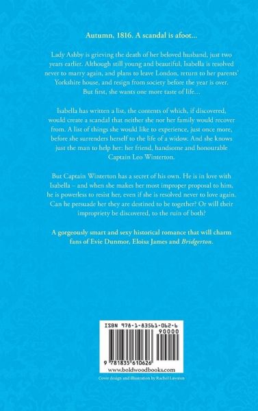 Read the most captivating historical novel of the year!'If you're girding your loins for Bridgerton, you may want to indulge in this Regency romp' - THE TIMES Autumn, 1816... Lady Ashby is grieving the death of her beloved husband, just two years earlier. Although still young and beautiful, Isabella is resolved never to marry again, and plans to leave London, return to her parents' Yorkshire house, and resign from society before the year is over. But first, she wants one more taste of life... Isabella has written a list, the contents of which, if discovered, would create a scandal that neither she nor her family would recover from. A list of things she would like to experience, just once more, before she surrenders herself to the life of a widow. And she knows just the man to help her: her friend, handsome and honourable Captain Leo Winterton. But Captain Winterton has a secret of his own. He is in love with Isabella - and when she makes her most improper proposal to him, he is powerless to resist her, even if she is resolved never to love again. Can he persuade her they are destined to be together? Or will their impropriety be discovered, to the ruin of both? Readers can't get enough of Emma Orchard's books: 'If you're girding your loins for Bridgerton, you may want to indulge in this Regency romp' - THE TIMES 'An exciting new talent' - KATIE FFORDE 'Hot stuff. I loved it!' - FERN BRITTON 'Absolutely glorious' - SOPHIE IRWIN 'A delicious Regency romp' - ALAN TITCHMARSH 'Sensual and exciting' - HEIDI SWAIN 'Heyer with spice!' - LIZ FENWICK 'Witty, heartfelt, deeply emotionally authentic and incredibly sexy' - KATY MORAN 'Sexy, seductive and swoon worthy' - SARAH BENNETT 'Witty, spicy, seductive' - HANNAH DOLBY 'Perfect for fans of Bridgerton' - DARCIE BOLEYN 'Fans of Heyer and Bridgerton rejoice!' - CHARLOTTE BUTTERFIELD 'A delicious slice of escapism' - LAURA WOOD 'Heart-thumping romance' - JENNI KEER