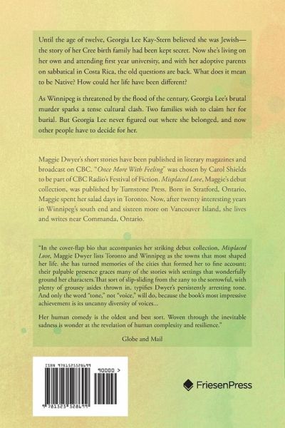 Until the age of twelve, Georgia Lee Kay-Stern believed she was Jewish - the story of her Cree birth family had been kept secret. Now she's living on her own and attending first year university, and with her adoptive parents on sabbatical in Costa Rica, the old questions are back. What does it mean to be Native? How could her life have been different? As Winnipeg is threatened by the flood of the century, Georgia Lee's brutal murder sparks a tense cultural clash. Two families wish to claim her for burial. But Georgia Lee never figured out where she belonged, and now other people have to decide for her.