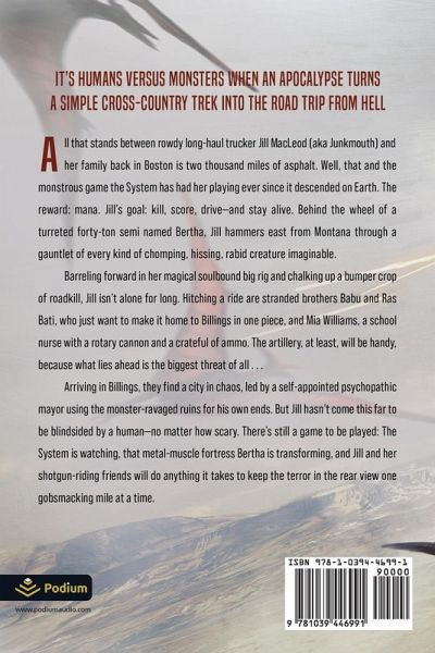 It's humans versus monsters when an apocalypse turns a simple cross-country trek into the road trip from hell in this breakneck LitRPG thrill ride. All that stands between rowdy long-haul trucker Jill MacLeod (aka Junkmouth) and her family back in Boston is two thousand miles of asphalt. Well, that and the monstrous game the System has had her playing ever since it descended on Earth. The reward: mana. Jill's goal: kill, score, drive-and stay alive. Behind the wheel of a turreted forty-ton semi named Bertha, Jill hammers east from Montana through a gauntlet of every kind of chomping, hissing, rabid creature imaginable. Barreling forward in her magical soulbound big rig and chalking up a bumper crop of roadkill, Jill isn't alone for long. Hitching a ride are stranded brothers Babu and Ras Bati, who just want to make it home to Billings in one piece, and Mia Williams, a school nurse with a rotary cannon and a crateful of ammo. The artillery, at least, will be handy, because what lies ahead is the biggest threat of all . . . Arriving in Billings, they find a city in chaos, led by a self-appointed psychopathic mayor using the monster-ravaged ruins for his own ends. But Jill hasn't come this far to be blindsided by a human-no matter how scary. There's still a game to be played: The System is watching, that metal-muscle fortress Bertha is transforming, and Jill and her shotgun-riding friends will do anything it takes to keep the terror in the rear view one gobsmacking mile at a time.